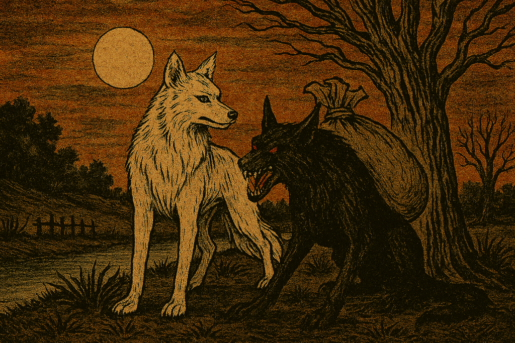 Central American folklore introduces El Cadejo, a pair of supernatural dogs — one white, one black — who follow travelers at night. The white Cadejo protects the innocent; the black one brings misfortune and madness.